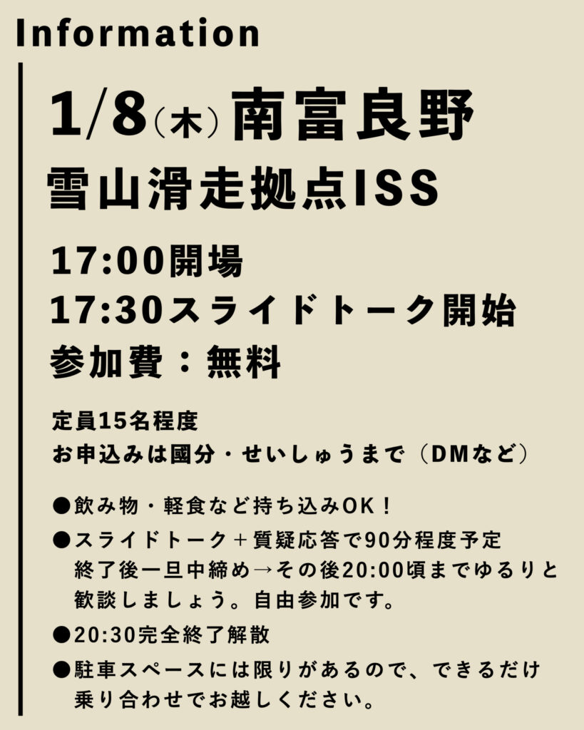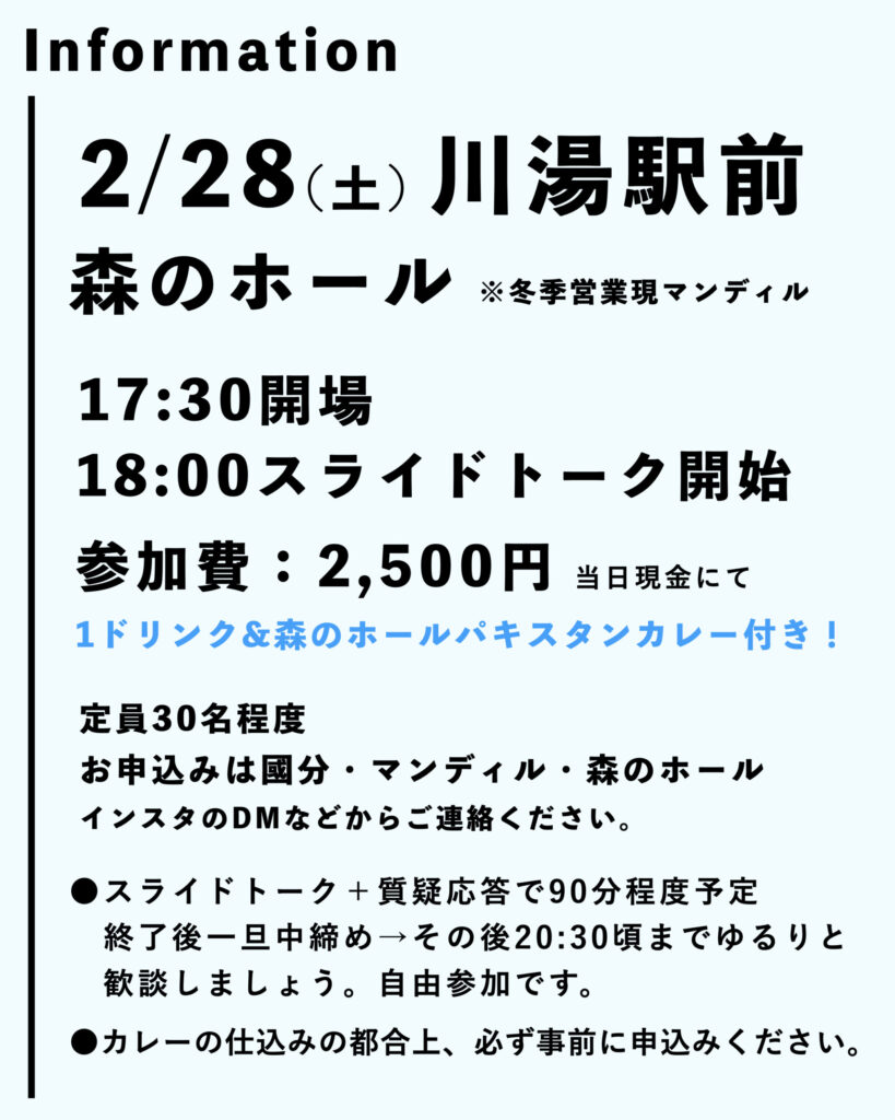 ●各会場の申込みはInstagramなどのメッセージから。